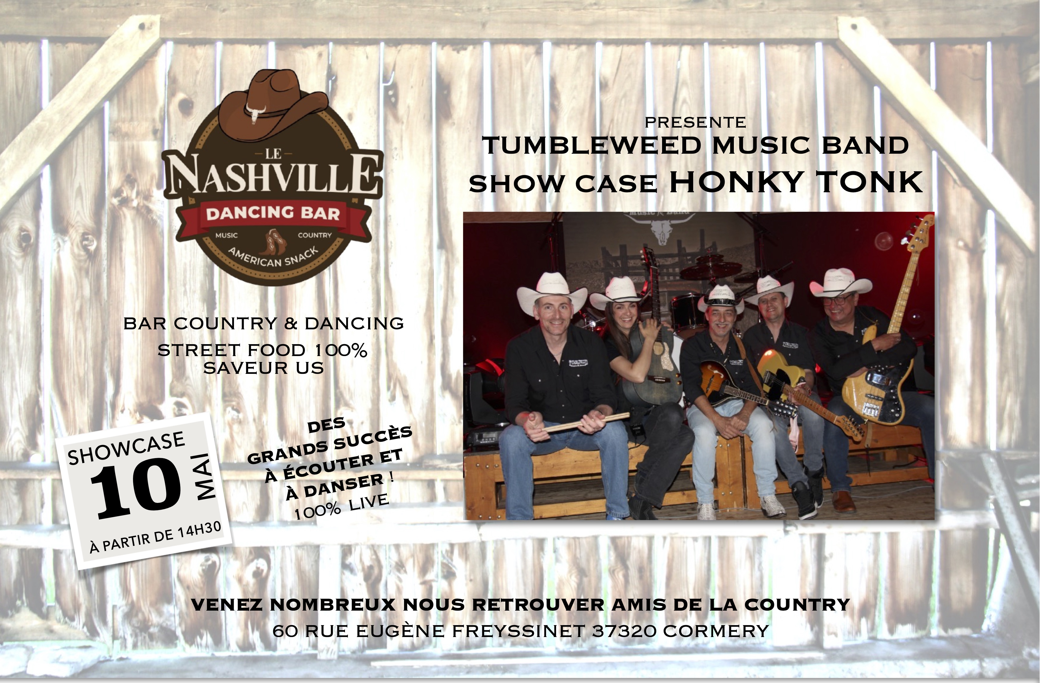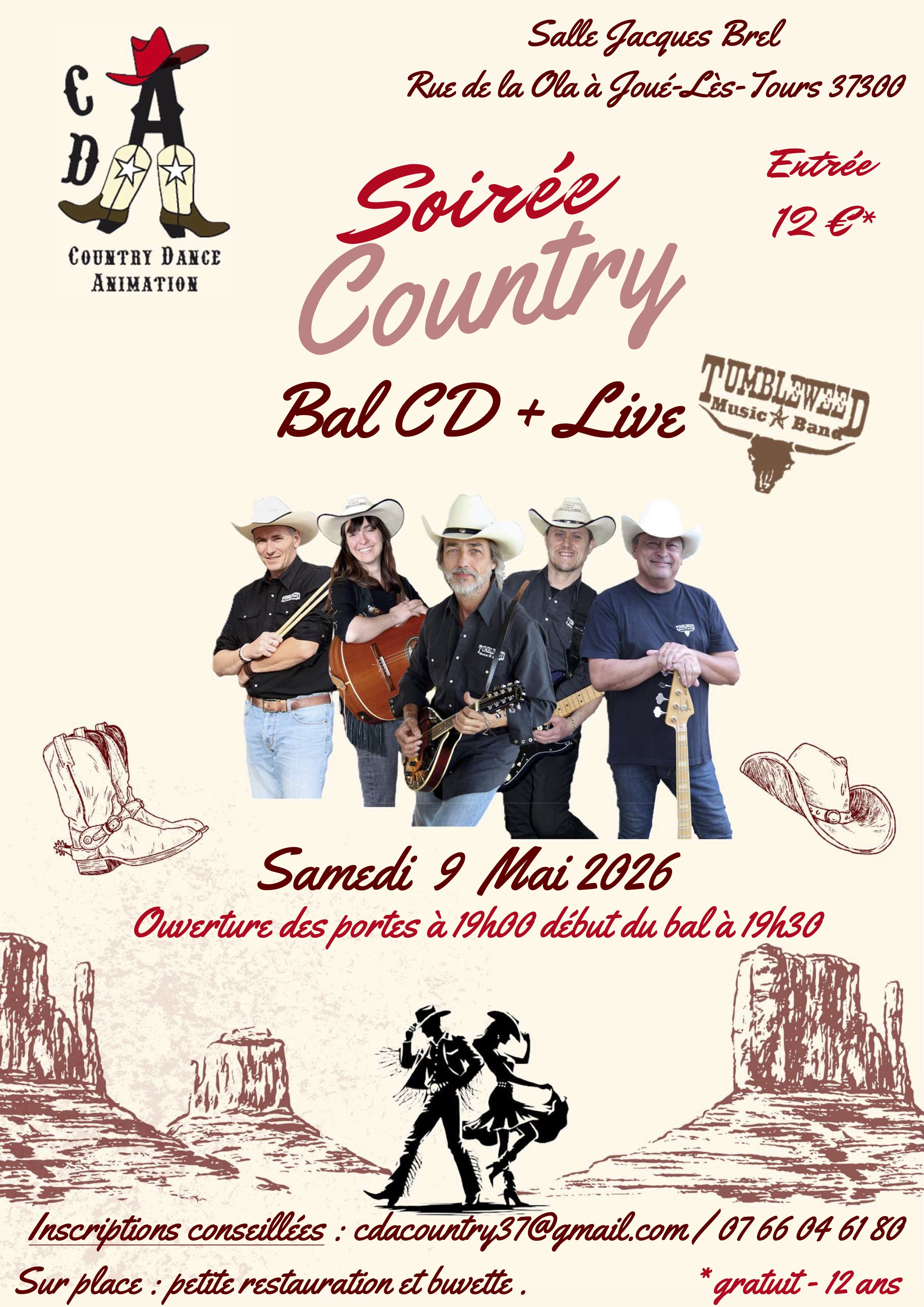 Nous sommes ravis d'avoir reçu l'invitation de Country Dance Animation 37. Nous serons présents sur scène le 9 mai 2026 pour vous faire danser et surtout passer une soirée mémorable. Un grand Merci. Toutes les info sur l'affiche.